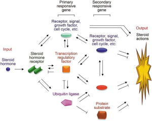 The human body regulates levels of sex hormones using hypothalamic-pituitary-gonadal axis (HPG axis is the endo term used). The axis controls development, reproduction, and aging in animals. Gonadotropin-releasing hormone (GnRH) is secreted from the hypothalamus by GnRH-expressing neurons. The anterior portion of the pituitary gland produces luteinizing hormone (LH) and follicle-stimulating hormone (FSH), and the gonads produce estrogen and testosterone.